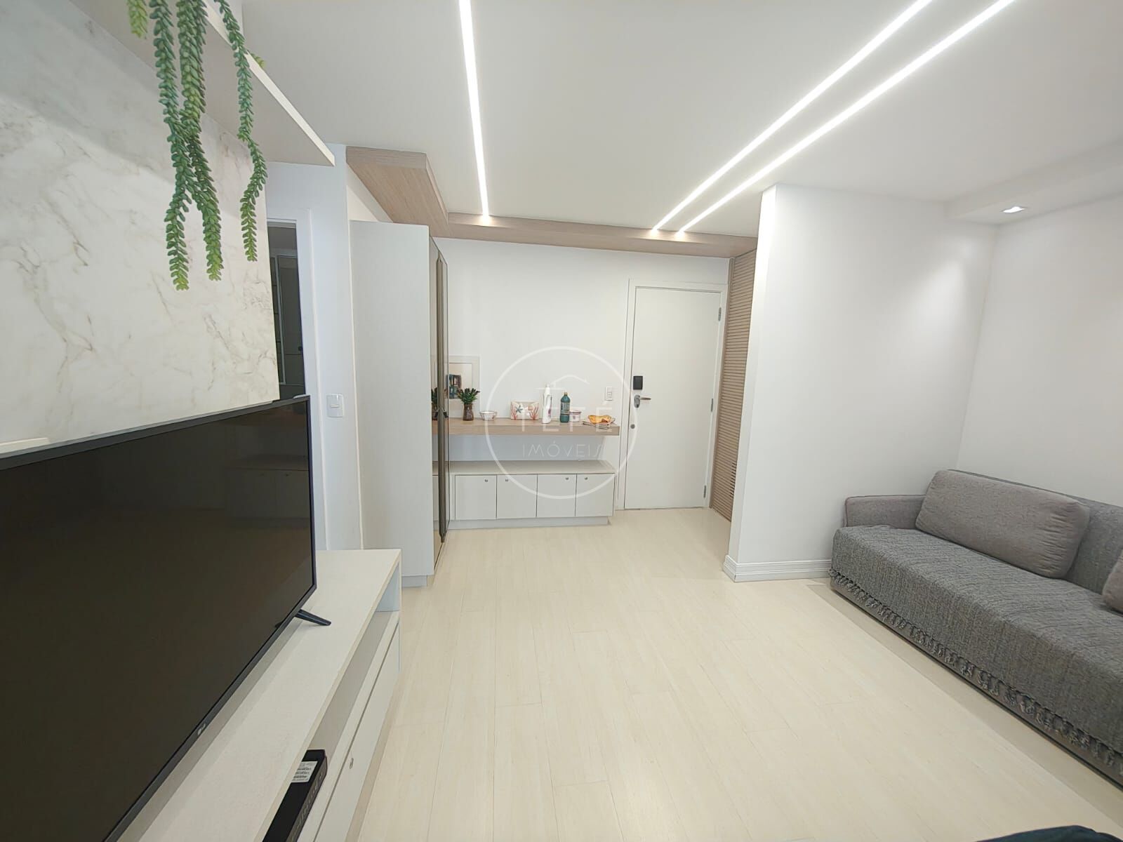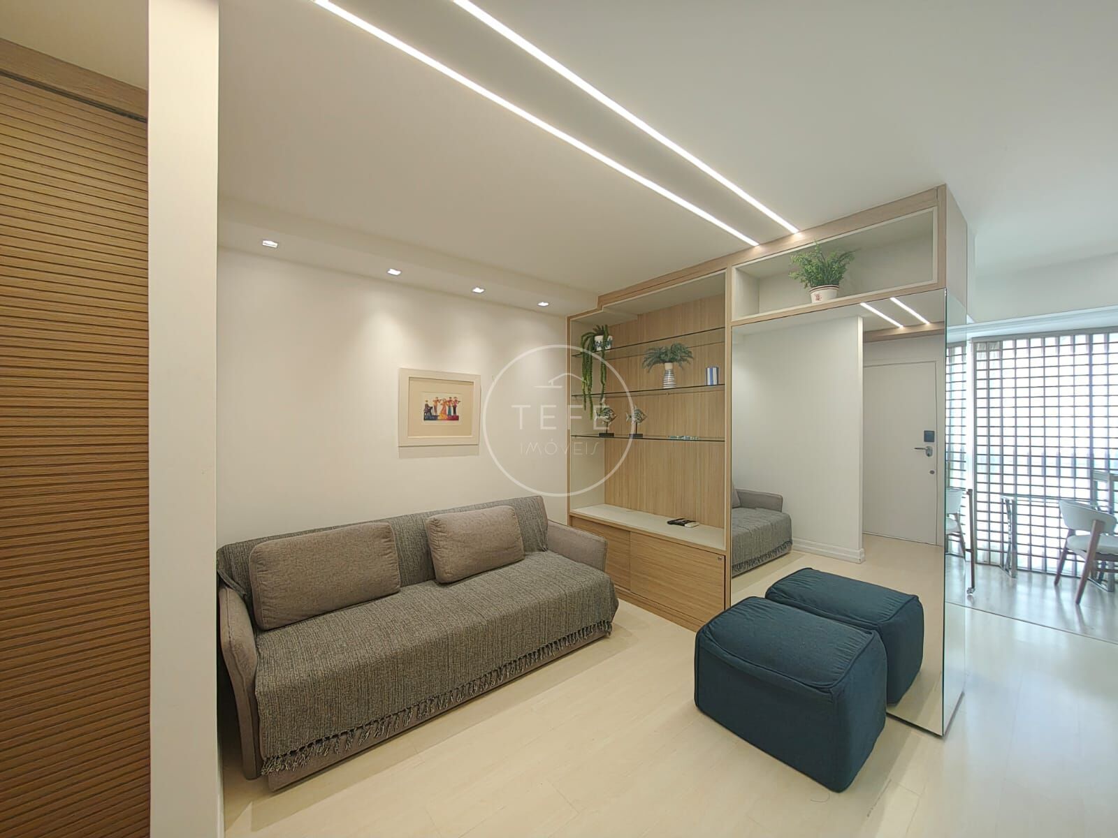 O imóvel, recentemente reformado, oferece um ambiente acolhedor e moderno, ideal para quem busca praticidade com charme. A sala em dois ambientes é iluminada e integrada ao varandão, onde a vista lateral para o mar cria um clima relaxante. A cozinha americana totalmente integrada deixa o espaço mais funcional e contemporâneo, enquanto a lavanderia embutida facilita o dia a dia.