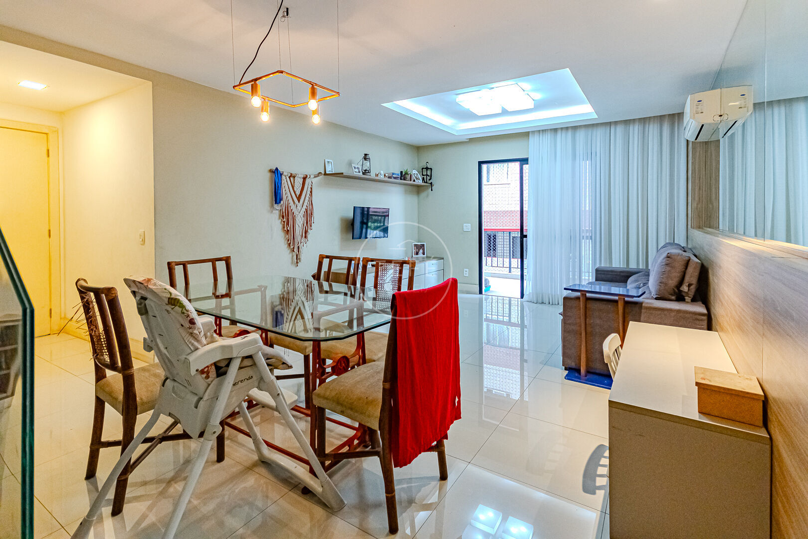 Com 133 m² muito bem distribuídos, o imóvel conta com uma sala ampla em dois ambientes, com excelente iluminação natural e integração com a varanda, proporcionando um espaço moderno, aconchegante e ideal para receber.
