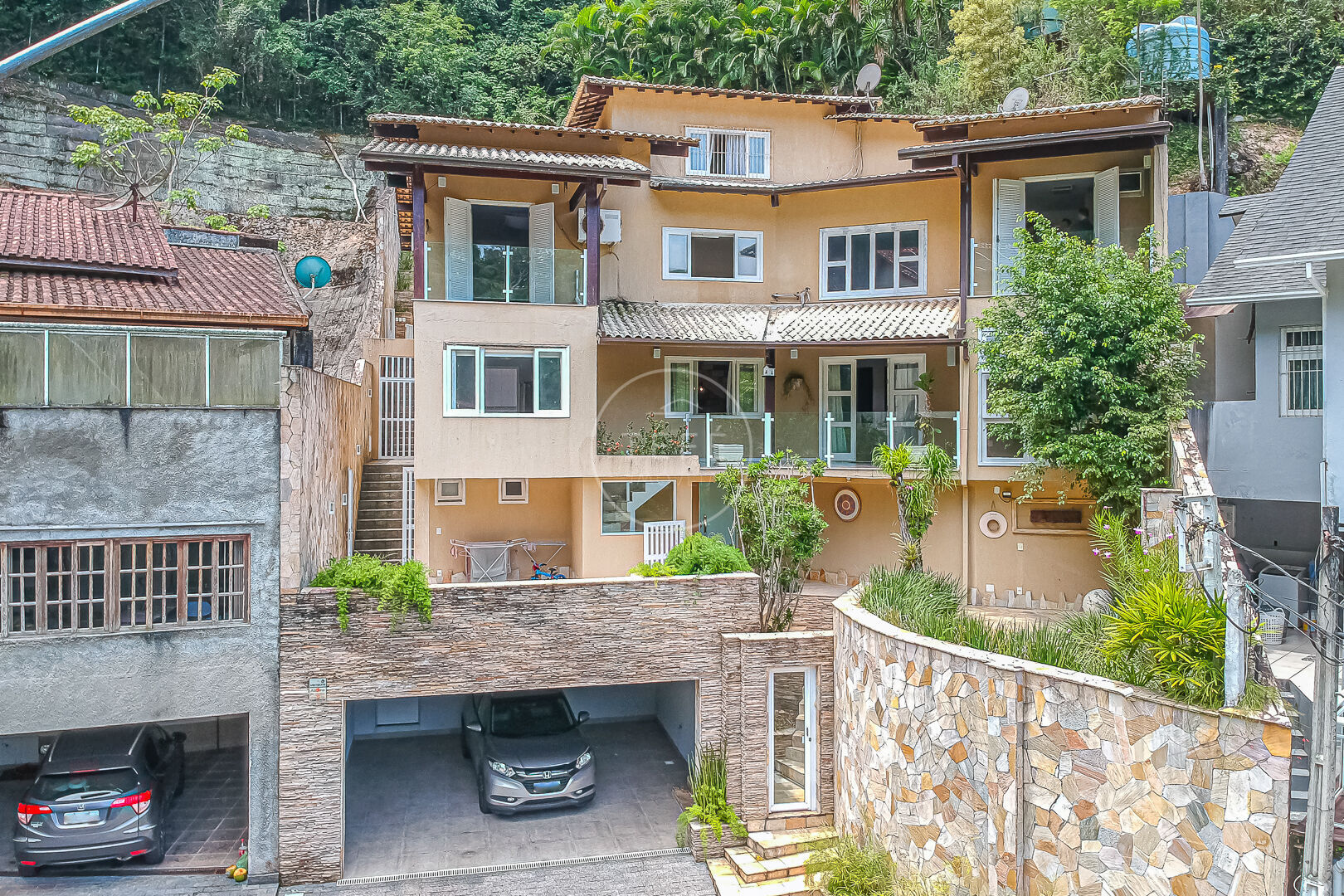 Em terreno de aclive, está localizada no ponto mais alto do condomínio Belo Vale, conferindo uma vista do costão verde da reserva ecológica, além de propiciar mais ventilação, claridade e privacidade ao ambiente.