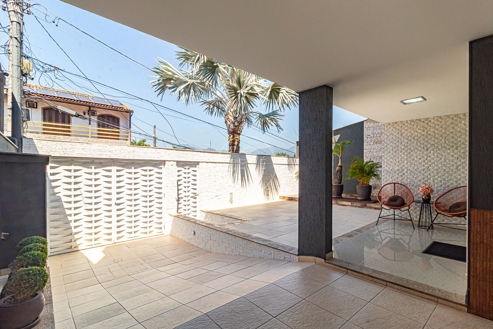 A residência dispõe de sistema de câmeras, interfone e detecção de fumaça.